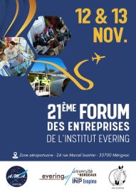 L’Institut evering organise son 21ème Forum des entreprises les 12 et 13 novembre prochains sur son site de Mérignac. Cette année encore près de 40 entreprises et institutions partenaires seront présents pour échanger avec nos étudiants et présenter leurs activités en amphi tout au long de deux journées. Ce rendez-vous important de la vie de l’institut est également ouvert à nos alumni.