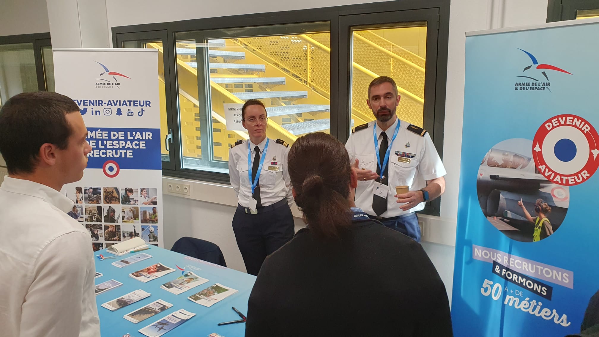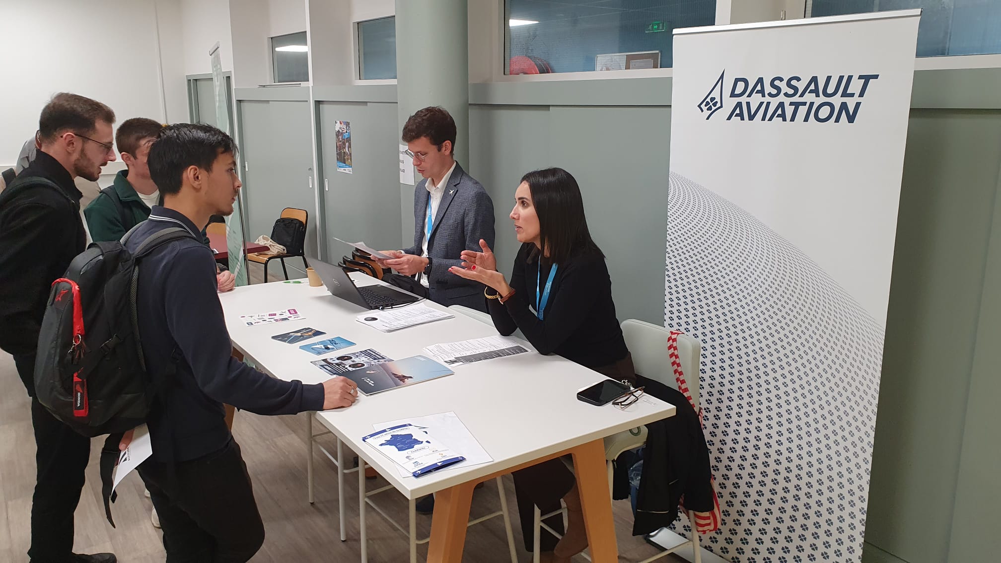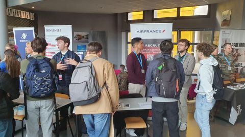 Nos étudiants en Licence professionnelle Maintenance Aéronautique, Master IMSAT et élèves-ingénieurs de l’ENSPIMA ont eu l’opportunité de présenter leurs parcours, d’élargir leur réseau et de plonger au cœur des métiers qui façonnent l’industrie aéronautique.